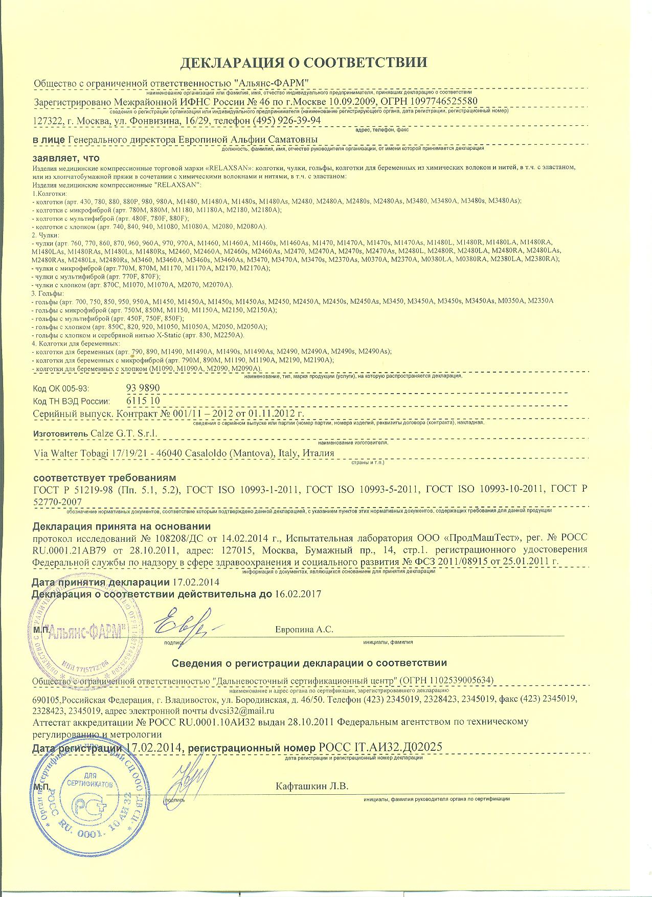 - гарантированное сохранение компрессионных свойств в течение шести месяцев ежедневного использования.