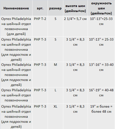 Для корректного подбора бандажа PHILADELPHIA на шейный отдел позвоночника необходимо измерить высоту и окружность шеи. Затем подобрать подходящий размер головодержателя PHILADELPHIA согласно таблице размеров.